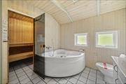 Haus-ID: 0223Verbringst du deinen Urlaub besonders komfortabel in einem fantastischen Ferienhaus, das eingebettet in herrlicher Umgebung auf einem Naturgrundstück im attraktiven Sønderstrand liegt? Ausgestattet ist es zudem mit Whirlpool, Sauna, Kaminofen und vielen anderen Details, die vollkommenen Urlaubsgenuss versprechen.