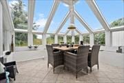 Haus-ID: 111Ein schöner Tageslichteinfall, eine interessante Raumaufteilung, mehrere Wohnebenen und ein Badezimmer mit Whirlpool und Sauna - dies sind nur einige der Annehmlichkeiten, die Ihnen dieses bezaubernde Ferienhaus im Inneren zu bieten hat. Auf der Terrasse steht ein Outdoor-Whirlpool, sodass sie zuhause baden können - wenngleich der Strand von Søndervig nur einen Kilometer entfernt ist.