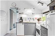 Das Ferienhaus begrüßt Sie mit einem schönen Wohnraum, der unter anderem einen Fernseher, eine Wärmepumpe und eine Schlafnische mit einem Doppelbett umfasst. In den Wohnraum ist auch die schöne, offene Küche integriert. Ein wunderbar helles Badezimmer mit einer Dusche und zwei schöne Schlafräume stehen ebenfalls zu Ihrer Verfügung. Einer der Schlafräume beinhaltet ein Doppelbett. Im zweiten Schlafraum (Nebengebäude) sind Einzelbetten untergebracht. In den Schlafräumen sind keine Kleiderschränke vorhanden, dafür aber Regale und Haken. Die attraktive Terrasse des Hauses unterteilt sich in zwei Bereiche, und zwar in einen überdachten Bereich und in einen großen, offenen Bereich in Form eines Innenhofes, der komplett geschlossen ist und sich somit insbesondere bei Familien mit abenteuerlustigen Kleinkindern großer Beliebtheit erfreuen wird. Der Garten ist angenehm groß und eignet sich gut zum Umhertollen und Spielen. Stangentennis und Badmintonschläger samt Netz sind vorhanden.