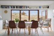 Das 112 m² große, im Jahr 1960 erbaute Ferienhaus, hat im Laufe der Jahrzehnte seinen ursprünglichen Charme trotz regelmäßiger Modernisierungen und Renovierungen bewahrt. Zuletzt wurden im Jahr 2023 die Wände weiß gestrichen und der Holzfußboden abgeschliffen. Sie erholen sich in hellem, gemütlichen Ambiente und genießen im Wohnraum das Feuer des Kaminofens und den Ausblick auf die umliegende Dünenlandschaft. Der Wohnraum ist offen mit der funktionellen Küche verbunden. Ein kleiner Flur führt Sie in das Badezimmer und in das separate WC. Am anderen Ende des Hauses liegen drei drei Schlafzimmer, die insgesamt sechs Schlafplätze bieten.
