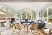 Auf dem großen Gartengrundstück kann gespielt, herumgelaufen, sich gesonnt, im Sandkasten gebuddelt und geschaukelt werden - so lässt sich der dänische Sommer genießen. Im Südosten wurde eine große, geschlossene und teilweise überdachte Terrasse angelegt, auf der sich ungestört aufgehalten werden kann und Kinder sowie Hunde unbesorgt spielen können. Grill, Gartenmöbel und Liegestühle stehen selbstverständlich den Gästen zur Verfügung.