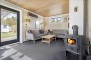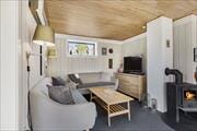 Das Ferienhaus verfügt über eine offene Küche mit einem sich direkt anschließendem Wohnzimmer im Winkel und einem Essbereich. In dem wunderbaren Wohnzimmer sind ein Kamin und eine große Fensterpartie mit Blick auf die überdachte Terrasse vorhanden. Drei Schlafzimmer, zwei mit jeweils zwei Einzelbetten und das dritte mit einem Schlafsofa für eine Person, insgesamt steht Platz für fünf Personen zur Verfügung. Einfaches Badezimmer mit Duschnische. Waschmaschine im Nebenhaus.