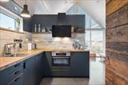 Die ausdrucksstarke Fassade und das Dach sind mit Brettern aus dänischer Douglasie versehen, die im klassisch japanischen Shou Sugi Ban-Stil gebrannt wurden. Auf der Holzterrasse genießen Sie einen freien Ausblick auf den reizvollen, alten Jollenhafen und auf die traumhaft schönen Sonnenuntergänge im Westen.