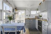 Bei diesem Ferienhaus sind die Küche und der Wohnraum harmonisch miteinander kombiniert. Der Raum besticht aufgrund der großen Panoramafenster mit einem herrlichen Lichteinfall und mit der wohl denkbar schönsten Aussicht. Der helle und moderne Wohnraum sorgt mit seiner Einrichtung für ein entspanntes Wohngefühl im Stil der Westküste. Der Kamin sorgt an kühleren Tage für angenehme Wärme und ein Maximum an echter dänischer Ferienhausgemütlichkeit. Ihnen stehen zwei Schlafräume zur Verfügung, von denen einer mit einem Doppelbett eingerichtet ist. Im zweiten Schlafraum steht ein Einzelbett mit darüberliegendem Hochbett für Sie bereit. Zwei weitere Schlafplätze befinden sich in Form zweier Einzelbetten oben auf dem offenen Schlafboden im Wohnbereich. Das helle Badezimmer ist mit einer Waschmaschine und einem Wäschetrockner ausgestattet.
