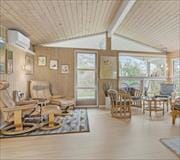 Das Haus wurde in den Jahren 2017 und 2022 renoviert und bildet einen perfekten Rahmen für einen gemütlichen und erholsamen Urlaub im Familien- oder Freundeskreis. Unmittelbar nach dem Betreten befinden Sie sich im hellen, offenen Wohnraum. Dieser bildet das Herzstück des Urlaubsdomizils und wird im Nu zum sozialen Treffpunkt aller Mitreisenden avancieren. Der große Wohnraum unterteilt sich in drei separate Aufenthaltsbereiche. In der einen Ecke erwartet Sie ein Sofa auf dem Sie fernsehen (englisch, dänisch, deutsch, norwegisch und schwedisch), DVDs anschauen und die Wii-Spielekonsole nutzen können. In den beiden anderen Eckchen machen Sie es sich mit einem Getränk, einem Buch und Ähnlichem gemütlich oder hören Musik. Zur Stereoanlage gehören rund 100 Schallplatten, die Sie gerne nutzen dürfen. Für Karten-, Brettspiele und Puzzles bietet sich der Esstisch an. All diese Dinge sind ebenfalls vorhanden. In den beiden Essbereichen genießen Sie die Mahlzeiten. Beim ersten Essbereich handelt es sich um ein großes Esszimmer, dass sich an der Rückseite des Hauses neben der Küche befindet. Dank der Dachflächenfenster und der Glasscheiben und Terrassentüren, ist dieser Bereich wunderbar hell und freundlich. Geschirr, Gläser, Servietten, Decken und dergleichen sind reichlich vorhanden. Der andere Essbereich liegt an der Vorderseite des Hauses und eignet sich neben dem gemeinsamen Essen auch für unterhaltsame Spielrunden. Die im Jahr 2017 modernisierte und renovierte Küche ist mittig im Haus platziert. Sie beinhaltet alles, was Sie für die Zubereitung Ihrer Mahlzeiten benötigen. Hierzu zählen unter anderem ein Backofen, ein Kochfeld, eine Mikrowelle, ein Geschirrspüler, eine Kaffeemaschine und ein Kühlschrank mit Gefriermöglichkeit. Die Schlafplätze verteilen sich auf drei gute Zimmer. Das erste Zimmer ist groß und mit einem eigenen Badezimmer versehen. Es beinhaltet ein Doppelbett, viel Schrankfläche und einen Fernseher mit lokalen TV-Sendern. In direkter Verlängerung des Raumes befindet sich das Badezimmer. Das zweite Badezimmer liegt neben der Eingangstür des Hauses und umfasst ein WC, ein Waschbecken, eine Dusche , eine Waschmaschine und einen Wäschetrockner. Der zweite Schlafraum ist angenehm groß, mit zwei guten Einzelbetten für Erwachsene und mit einem kleinen Schrank versehen. Der dritte Raum ist das Kinderzimmer mit einem Etagenbett für zwei Kinder und einem Einzelbett für ein größeres Kind oder einen Teenager. Die Schränke beinhalten viel Spielzeug, das Ihre Jüngsten selbstverständlich nutzen dürfen. Eine Babybadewanne und ein Hochstuhl sind ebenfalls in diesem Zimmer untergebracht.