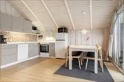 Das Ferienhaus wurde im Jahr 2024 neu renoviert, mit neuen Holzböden im gesamten Gebäude, einer neuen Küche und einem neuen Badezimmer ausgestattet und wirkt sowohl außen als auch innen äußerst schön und gepflegt. Das Haus besteht aus einem Badezimmer und drei Schlafzimmern, eines davon mit einem Doppelbett und zwei davon mit Einzelbetten. Am westlich gelegenen Ende des Hauses liegt der Aufenthaltsraum, der aus einer Kombination von Küche und Wohnzimmer besteht – es ist also egal, ob du Karten spielst, einen Film anschaust oder kochen möchtest, du kannst es alles zusammen machen. In der gemütlichen Couch kannst du dich sehr gut entspannen, wenn du zum Beispiel nach dem Abendessen gemeinsam mit der ganzen Familie Geschichten lesen möchtest.