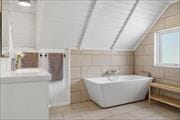 Die große Holzterrasse des Ferienhauses ist mit allem ausgestattet, was das Leben im Freien besonders angenehm macht – darunter hochwertige Gartenmöbel, gute Liegestühle und ein Grill, wenn das Abendessen im Freien zubereitet werden soll. Sowohl der Sonnenschirm als auch der überdachte Terrassenbereich spenden bei Bedarf Schatten und egal, wo Sie sich niederlassen, können Sie die schöne und ruhige Umgebung des Naturgrundstücks genießen. Auch vom Außenwhirlpool haben Sie einen Blick auf violettes Heidekraut und knorrige Kiefern, und selbst in den Jahreszeiten, in denen Schnee auf dem Strohdach und den mit Strandroggen bedeckten Dünen liegt, kann es sich hier im warmen Wasser absolut magisch anfühlen.