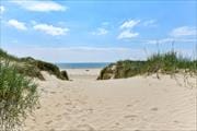 Ferienhäuser in der Nähe der Nordsee mit breiten Sandstränden und hügligen Dünenlandschaften