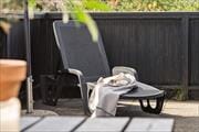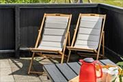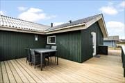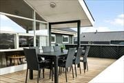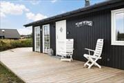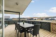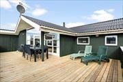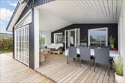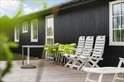 Schönes Ferienhaus mit einem gemütlich überdachten und nahezu umschlossenen Außenareal mit Gartenmöbeln sowie einer offenen Terrasse auf drei Seiten des Hauses.