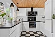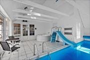 Freuen Sie sich auf dieses gut eingerichtete und schön möblierte Poolhaus mit Reetdach. Das Herzstück des Hauses bildet die zentral platzierte, offene, große Kombination aus Wohnraum und Küche. In der gut ausgestatteten, schönen und neueren Küche stehen Ihnen unter anderem eine Mikrowelle und ein Geschirrspüler hilfreich zur Seite. Neben der Küche ist der Essplatz eingerichtet, an dem alle Mitreisenden Platz finden. Der Wohnraum lädt mit seiner großen Sofagruppe, dem behaglich knisternden Kaminofen und dem Fernseher mit einigen dänischen Sendern und deutschen Parabolkanälen zu wunderbar gemütlichen Stunden im Kreise Ihrer Lieben ein. Vom Wohnraum aus genießen Sie direkten Zugang zum Poolbereich, wo Sie neben einem Swimmingpool auch eine Sauna und ein Whirlpool erwarten. Der Pool verfügt über eine Wassertiefe von 133 Zentimetern und ist mit einer Wasserrutsche und einer Gegenstromanlage ausgestattet. Zur Poolabteilung gehört auch ein Badezimmer mit einer Dusche, einem WC und einem Zugang zur Sauna. Die Schlafräume sind auf zwei unterschiedliche Abteilungen verteilt, die jeweils an einem Ende des Hauses platziert sind. Vier Schlafräume begrüßen Sie mit je einem höhenverstellbaren Doppelbett. Zwei Schlafräume sind mit je zwei Einzelbetten ausgestattet. Insgesamt bietet dieses herrliche Ferienhaus also Platz für bis zu 12 übernachtende Urlauber. Glasfaser-Internet ist im Haus vorhanden. Der Hauswirtschaftsbereich beinhaltet praktischerweise eine Waschmaschine und einen Wäschetrockner. Haustiergebühr 28 Euro pro Hund.