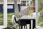 Dank der Bäume und Büsche, die das Grundstück umgeben, hältst du dich im Freien angenehm ungestört auf. Zwei gute Terrassen mit Gartenmöbeln laden zu entspannten Stunden in der Sonne ein. Vor dem Ferienhaus begrüßt dich die Westterrasse, auf der du angenehm windgeschützt die Nachmittags- und Abendsonne genießt.