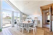 Mit Terrassen nach Osten und Westen könnt ihr die Sonne von morgens bis abends genießen. Auf der Ostterrasse beginnt der Tag perfekt mit einer Tasse Kaffee in den ersten Sonnenstrahlen, und der südliche Teil eignet sich ideal für ein sonniges Mittagessen. Auf der Westterrasse könnt ihr das Abendessen in der späten Sonne servieren – und dabei den Sonnenuntergang in vollen Zügen genießen. Vom großen Panoramafenster im Wohnzimmer wie auch von der Westterrasse eröffnet sich euch zudem ein herrlicher Blick auf die Dünen am Meer – ein Anblick, der den Urlaubsmoment besonders macht, wenn die Sonne am Horizont versinkt. Auf dem gemütlichen Naturgrundstück findet ihr rund ums Haus jederzeit ein windgeschütztes Plätzchen.