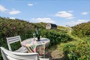 Die Terrassen gen Südosten und Südwesten bieten Ihnen optimale Bedingungen, warme Sommertage in der Sonne zu verleben. Die jüngsten Urlauber dürfen sich auf eine Schaukel und eine Sandkiste freuen. Begeistern werden Sie die Außendusche und die Saunatonne mit Platz für alle Mitreisenden. Auf der Düne des Grundstücks eröffnet sich Ihnen ein reizvoller Ausblick über die Umgebung und den Ringkøbing Fjord. Auf der Düne werden Sie Zeuge fantastischer Sonnenauf- und Sonnenuntergänge.