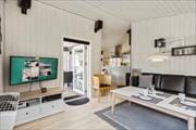 Der Innenbereich dieses ansprechenden Ferienhauses ist modern eingerichtet und in hellen Farbtönen gestrichen. Die Küche ist offen mit dem Essbereich kombiniert. Im Wohnraum laden eine Polstersitzgarnitur, ein Fernseher und ein Kaminofen zu gemütlichen Stunden im Kreise deiner Lieben ein. Zwei Schlafzimmer mit je einem Doppelbett und ein Schlafzimmer mit einem Einzelbett stehen für euch bereit. Das gesamte Haus besticht mit ansprechenden hellen Fußböden. Ein modern und hell eingerichtetes gefliestes Badezimmer steht ebenso zur Verfügung wie ein Gäste-WC. Dieses schöne gepflegte Ferienhaus eignet sich gut für Familien.