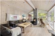 Das Haus hat ein großes und helles Wohnzimmer mit Panoramafenstern für einen schönen Blick auf die umliegende Natur. Für kühle Abende gibt es einen Holzofen. Das Wohnzimmer wird schnell zum Lieblingstreffpunkt der Familie werden. Hier gibt es einen Fernseher mit Chromecast für einen Filmabend. Der Essbereich ist schön groß und hat durch die großen Fenster viel Licht. Die Küche ist gut ausgestattet und bietet genug Platz um gemeinsam zu kochen. Vom Wohnzimmer und vom Essbereich aus gibt es einen Zugang zur Terrasse. Es gibt 4 Schlafzimmer, 2 mit Doppelbetten und 2 mit Doppelbetten und Etagenbetten, alle 4 Schlafzimmer haben direkten Zugang zur umliegenden Natur. Das nach Osten ausgerichtete Schlafzimmer hat einen Vorhang im dreieckigen Fenster. Es gibt 2 Bäder, eines davon mit Sauna und Whirlpool. Das Haus hat einen sehr hohen Standard und eignet sich perfekt für einen Urlaub mit einer großen Familie.