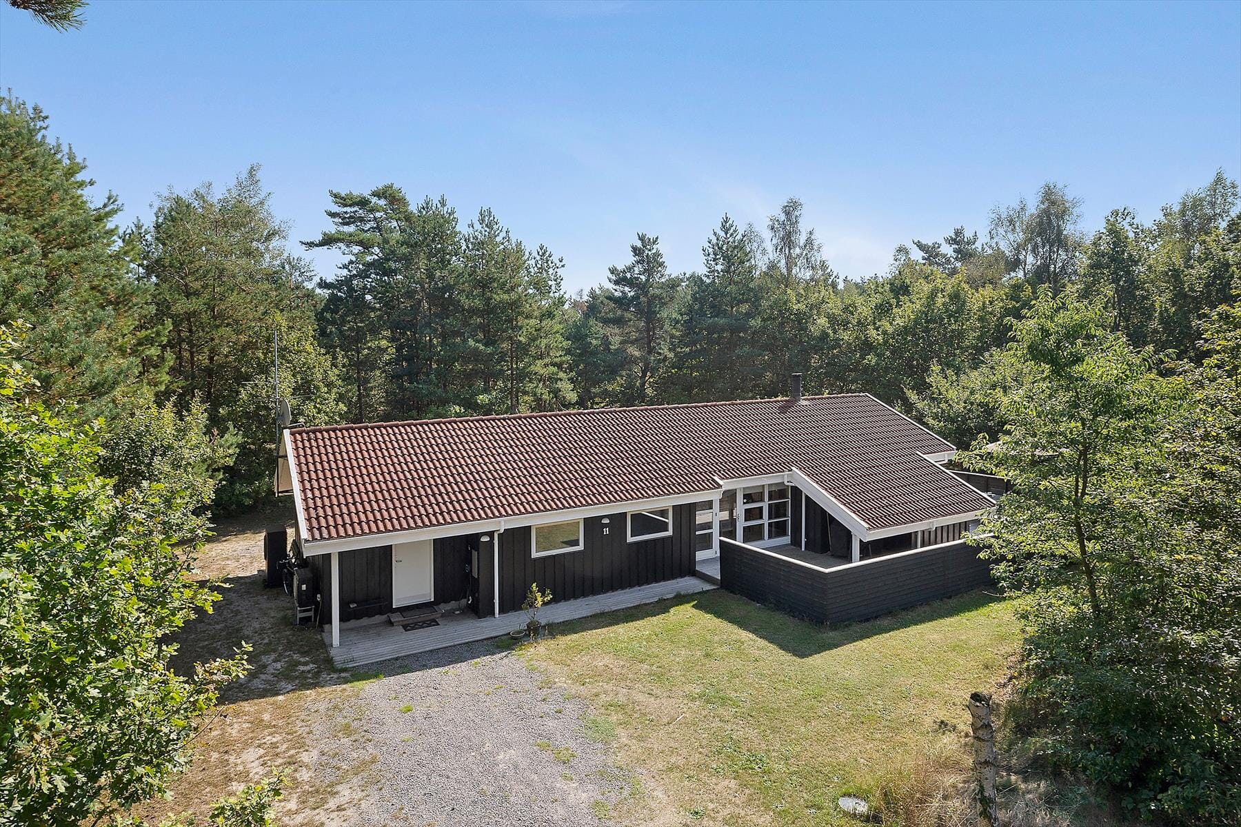 Das Haus liegt in einer Sackgasse und die Natur beginnt direkt vor der Tür – hier hast du gute Chancen, Hasen, Kaninchen und Rehe zu sehen. Den Ausblick auf die Natur kannst du von der großen, teilweise überdachten Terrasse mit schönen Gartenmöbeln und Grill genießen. Die Terrasse lädt dazu ein, die Sonne den ganzen Tag über zu genießen, und ein Spaziergang zum fast „privaten“ Strand ist sehr zu empfehlen. Das Grundstück bietet den Kindern viel Platz zum Spielen – ohne Verkehr und ganz sicher. Dein Auto kannst du direkt am Haus parken, das wie erwähnt in einer sehr ruhigen und abgeschlossenen Straße liegt.