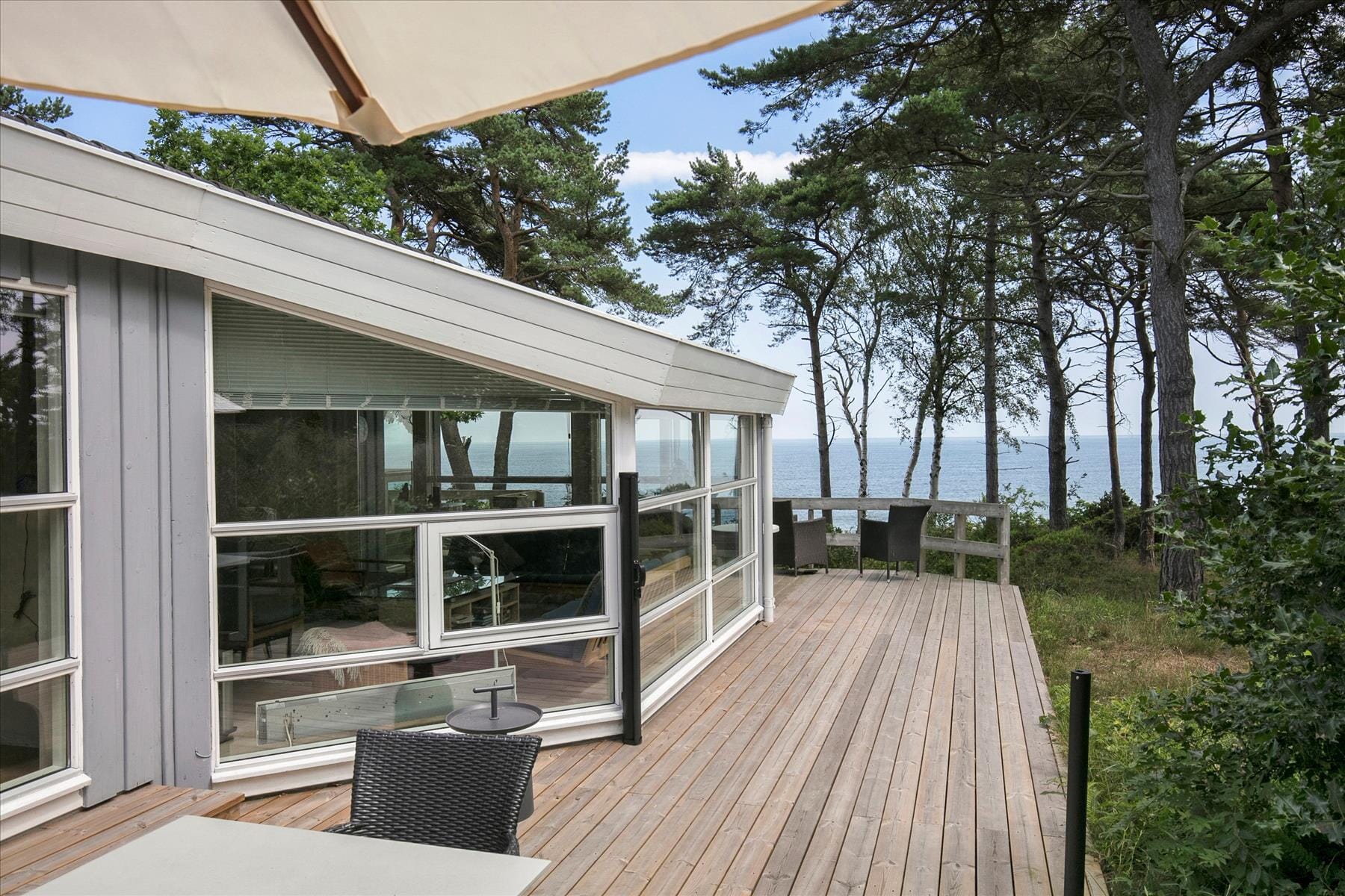 Komfortabel mit hochwertigen Möbeln eingerichtet, Wohn- und Essbereich auf zwei verschiedenen Ebenen. Kamin. Offene, gut ausgestattete Küche kombiniert mit dem Esszimmer. Vom Wohnzimmer haben Sie einen wunderbaren Blick entlang der Küste Richtung Gudhjem und über die Ostsee. Dieses Ferienhaus verwöhnt wirklich seine Gäste.
