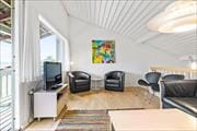 Diese Ferienwohnung befindet sich in einem ehemaligen Feriencenter, das im Jahr 1979 errichtet wurde. Die von einem Architekten entworfene Wohnung erstreckt sich über zwei Etagen. Hinter einem kleinen Eingangsbereich erwartet dich die geräumige, funktionelle Küche und der Essplatz. Über eine Treppe gelangst du in den gemütlichen TV-Raum, der mit einem Ausblick auf die Ostsee, auf Hammerknuden und den Leuchtturm Hammerfyr zu verzaubern weiß. An den TV-Raum schließt ein Balkon. Dir stehen zwei gute Schlafzimmer mit je einem Doppelbett zur Verfügung. Zwei separate, ausklappbare Gästebetten sind ebenfalls vorhanden. Das große Badezimmer beinhaltet neben einem WC, einer Duschnische und einer Fußbodenheizung auch eine Waschmaschine und einen Wäschetrockner. Vom Essbereich aus genießt du direkten Zugang zu einer kleinen überdachten Terrasse mit Gartenmöbeln und Ausblick auf den Spielplatz. Diese Ferienwohnung eignet sich hervorragend für eine Familie mit Kindern oder für gute Freunde.