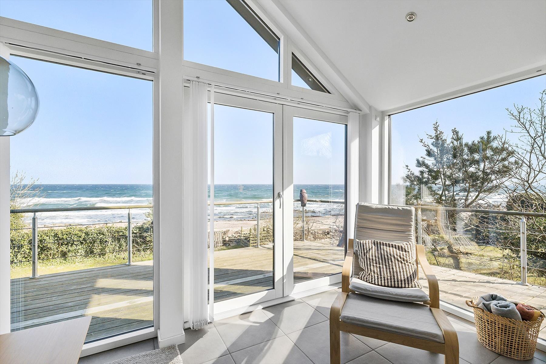 Auf der Längsseite des Hauses verläuft eine Terrasse in Richtung Ostsee, auf der du in Ruhe sitzen und auf die Wellen blicken kannst. Vom westlichen Teil der Terrasse führt eine Verbindung hinauf zu einer 8 m2 großen separaten Terrasse, die etwas erhöht in Relation zum Grundstück liegt. Vom Grundstück aus hast du Zugang zur Ostsee, hier kannst du schwimmen oder liegen und entspannen. Auf dem 490 m² großen Naturgrundstück stehen dir neben einer Ladebuchse auch Parkmöglichkeiten zur Verfügung.