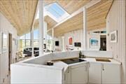Ein mit Stolz angebotenes Ferienhaus: modern, exklusiv, hochwertig und sehr komfortabel. In der Mitte des Hauses befindet sich der riesengroße, fantastische Wohnbereich mit Dachfenstern und deckenhohen Fenstern. Der Bereich kombiniert die offene Küche, den Essbereich und das Wohnzimmer, damit die ganze Familie beisammen ist. Es gibt drei Schlafräume und zwei Badezimmer, sehr praktisch zum Aufteilen in verschiedene Bereiche. Vom großen Schlafraum haben Sie Zugang zum Badezimmer mit Sauna, welcher nach langen Ausflügen am Meer verlockend zum Aufwärmen ist. Das Ferienhaus ist mit bester Technik ausgestattet, Sie empfangen dänische und deutsche TV-Sender und haben kostenloses WLAN, um nach Informationen und weiteren Dingen zu suchen. Ein Ferienhaus für alle, die sich erholsamen, guten Urlaub in wunderbarer Umgebung wünschen.