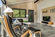 Wenn du dieses schöne Ferienhaus betrittst, wirst du sofort die offene und helle Atmosphäre bemerken. Die große, offen gestaltete Küche, die mit dem Wohnzimmer verbunden ist, ist mit modernen Qualitätsmaterialien eingerichtet, die sowohl zu kulinarischen Erlebnissen als auch zu gemütlichem Beisammensein einladen. Hier kannst du köstliche Mahlzeiten zubereiten, während du dennoch Teil des Gemeinschaftsraums im Wohnzimmer bist. Das gemütliche Wohnzimmer mit seinem stilvollen Design vermittelt ein Gefühl von heimeliger Behaglichkeit, besonders wenn du den Kamin anzündest und die warmen Flammen genießt. Ein zusätzliches Highlight erwartet dich in der Infrarotsauna des Hauses, die perfekt zur Entspannung nach einem Tag in der Natur geeignet ist. Das Haus bietet auch mehrere schöne Schlafzimmer.