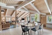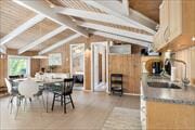 Sobald du das Ferienhaus betrittst, wirst du von einer gemütlichen und warmen Atmosphäre empfangen, die sowohl funktional als auch einladend ist. Das große Wohnzimmer ist geräumig und lichtdurchflutet, und hier kannst du nach einem langen Tag am Strand oder einem ruhigen Nachmittag vor dem knisternden Kaminofen zusammenkommen. Die großen Fenster lassen die Natur und das Licht herein, und vom Wohnzimmer aus hast du einen Blick auf den schönen Garten, auf den du direkt über die Terrasse zugreifen kannst. Das Haus bietet mehrere gute Schlafzimmer, die alle mit Komfort eingerichtet sind, sodass du dich für neue Abenteuer erholen kannst.