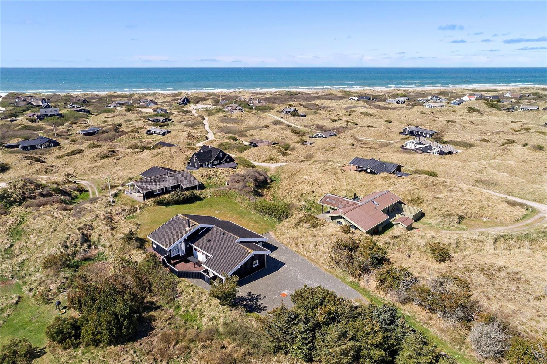 Draußen gibt es viel Platz, um sowohl die Sonne zu genießen als auch sich bei verschiedenen Aktivitäten auszutoben. Das große Grundstück ist ideal für Outdoor-Ballspiele oder einfach für entspannende Stunden auf dem Rasen. Wenn Sie eine Pause von der Sonne machen möchten, können Sie Schatten auf der Terrasse suchen, die sowohl Platz für Mahlzeiten im Freien als auch zum Entspannen bietet. Es gibt auch einen schönen Innenhof, in dem Sie in Ruhe sitzen und die Abendsonne genießen können. Der Strand ist nur einen kurzen Spaziergang entfernt, und hier können Sie ein erfrischendes Bad nehmen oder einfach am Wasser entlang spazieren und den Sand zwischen den Zehen spüren. Mit dem Meer in der Nähe und dem großzügigen Grundstück können Sie wirklich das ultimative Urlaubserlebnis inmitten der Natur genießen.