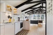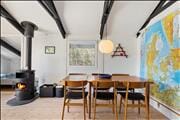 Wenn du das Ferienhaus betrittst, wirst du von einem schönen, hellen Wohnzimmer mit großen Fenstern empfangen, die einen fantastischen Blick auf die umliegende Natur bieten. Der Raum ist großzügig und einladend, perfekt für Entspannung und gemeinsames Beisammensein. Der Kaminofen sorgt an kühlen Tagen für eine gemütliche Atmosphäre, und der offene Küchen-/Wohnbereich ist ideal für gemeinsames Kochen und gemütliche Mahlzeiten. Die offene und luftige Einrichtung ermöglicht es dir, die gute Gesellschaft zu genießen und gleichzeitig in verschiedene Kuschelecken zurückzuziehen, wenn du Ruhe brauchst.