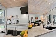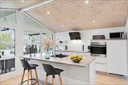 Bei diesem Ferienhaus handelt es sich um ein 92 m² umfassendes Urlaubsdomizil, das Sie mit drei Schlafräumen, einem Badezimmer, einem Eingangsbereich und einem großen Wohnraum samt integrierter Küche willkommen heißt. Die Raumaufteilung ist praktisch und der Zustand ist außergewöhnlich ansprechend. Dennoch sind es die schönen Details, die dieses Haus zu einem herrlichen Rückzugsort machen: beispielsweise in Form der beiden Barhocker an der Kücheninsel, die es Ihnen ermöglichen, dem Koch bei der Zubereitung der Mahlzeiten angenehme Gesellschaft zu leisten. Im Wohnraum unterhält Sie während gemütlicher Stunden auf dem Sofa der Apple-TV, über den Sie problemlos Ihre Lieblingsfilme und Serien streamen können. Dank der eingebauten Wärmepumpe, die nicht nur wärmen, sondern auch kühlen kann, erwarten Sie das gesamte Jahr hindurch angenehme Raumtemperaturen. Auch die großen Fensterpartien sollen nicht unerwähnt bleiben. Sie lassen unglaublich viel Tageslicht durch den Raum strömen und schaffen eine wunderbar luftige und offene Verbindung zum davorliegenden Terrassenareal.