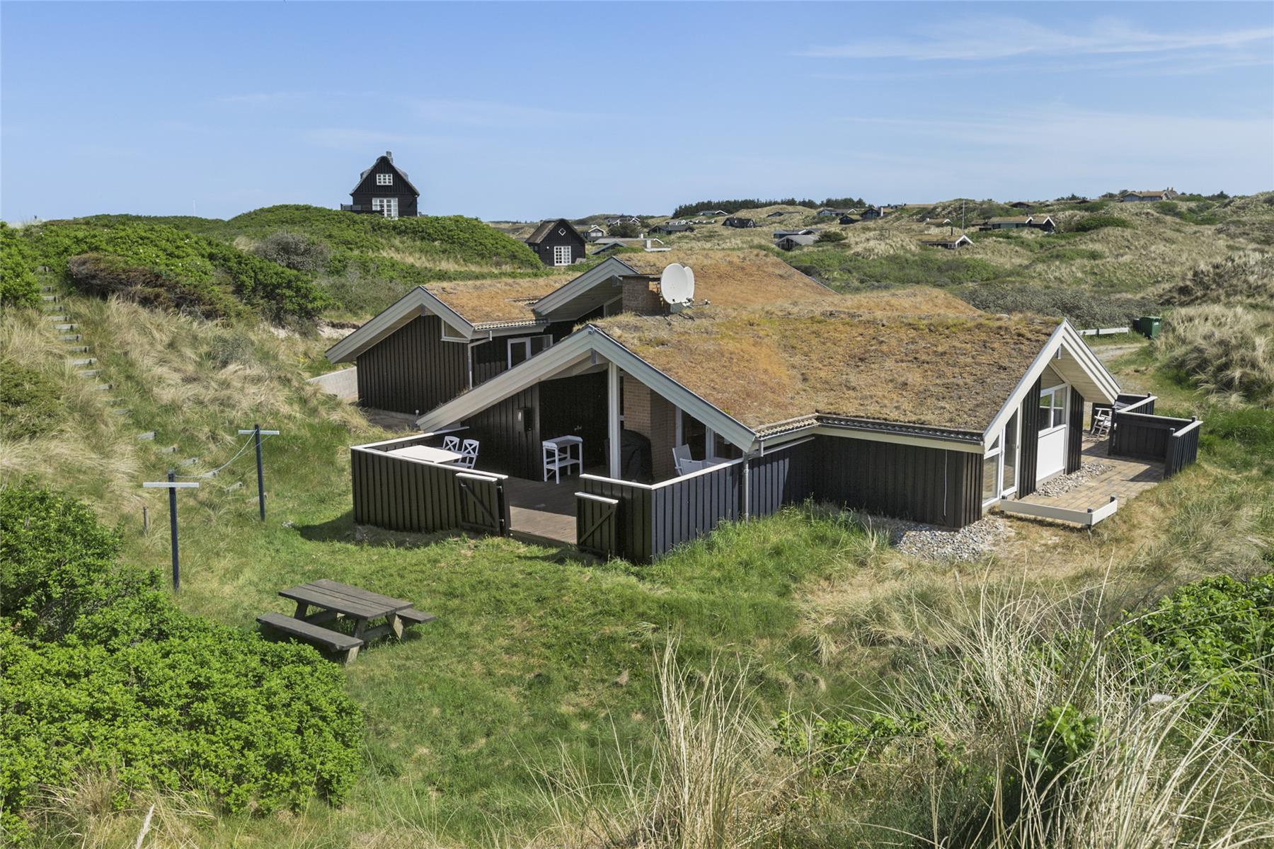 Haus-ID: BL201Geräumiges Ferienhaus in einzigartiger Lage und atemberaubenden Nordseeblick vom Aussichtspunkt auf dem Grundstück. Großes und praktisches Ferienhaus mitten in der schönen Dünenlandschaft bei Saltum. Nahe des Strandes und Gelegenheit sowohl den Sonnenaufgang als auch den Sonnenuntergang zu beobachten.