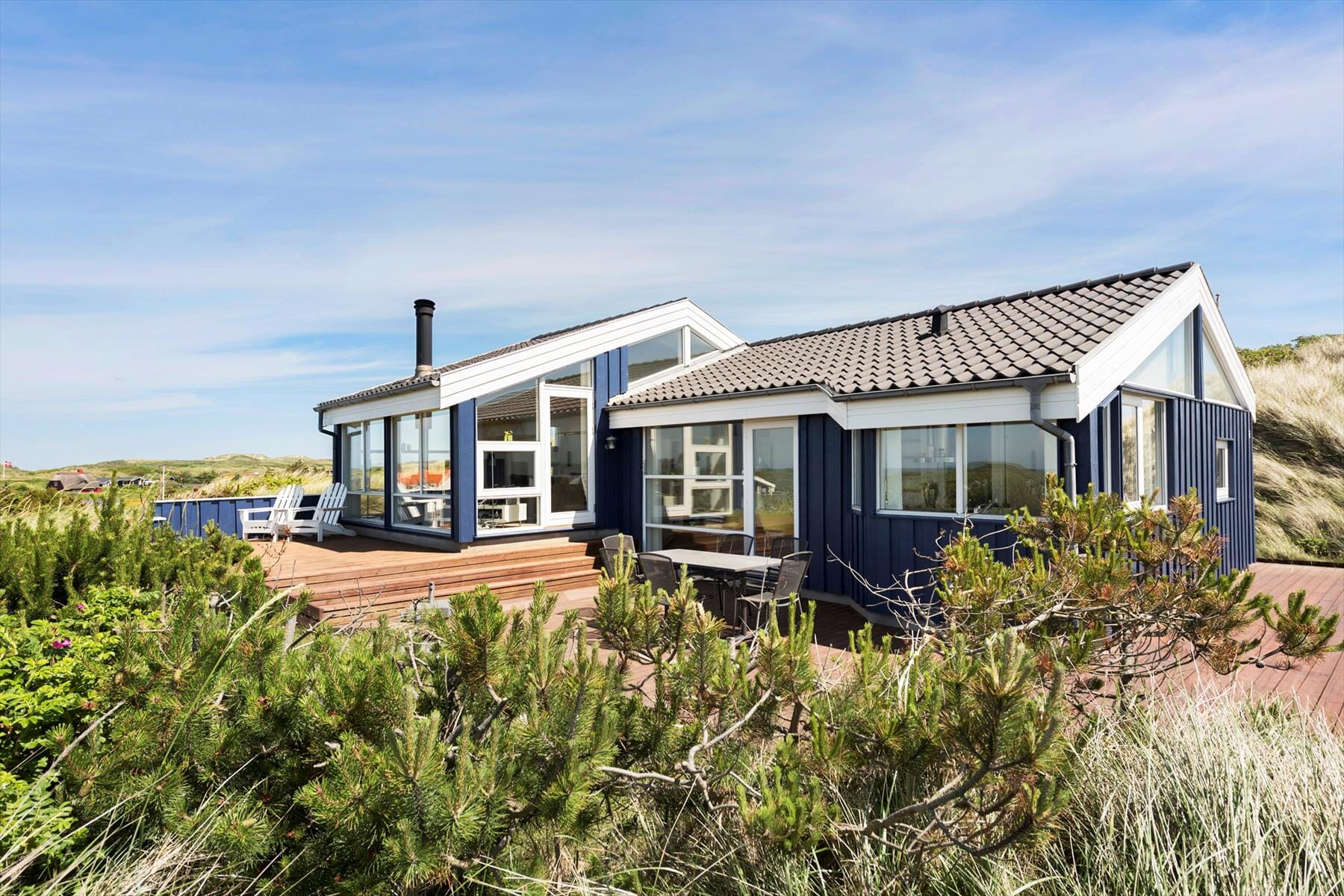Haus-ID: BL832Dieses schöne Ferienhaus ist ideal für diejenigen, die Komfort, Ruhe und eine schöne Umgebung miteinander verbinden möchten. Mit einer einzigartigen Lage auf einem schönen Naturgrundstück und einem atemberaubenden Panoramablick auf das Meer ist dies die perfekte Umgebung für einen Urlaub der Extraklasse, bei dem Entspannung, Qualität und Zweisamkeit im Vordergrund stehen. Die Nähe zur Stadt Blokhus und zur Nordsee macht dieses Ferienhaus zur perfekten Wahl für einen Urlaub, bei dem sowohl die Natur als auch das Stadtleben gleich um die Ecke sind.