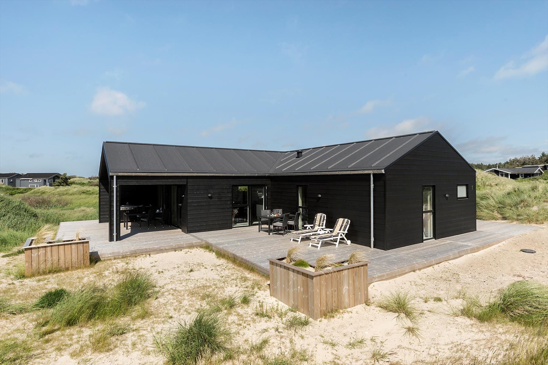 Eine der absoluten Perlen des Ferienhauses ist die große Terrasse, die sich um das Haus erstreckt und die Möglichkeit bietet, den ganzen Tag sowohl Sonne als auch Schatten zu finden. Hier kannst du den Tag mit einer Tasse Kaffee in der Morgensonne beginnen und ihn mit einem Abendessen unter freiem Himmel beenden, während die Sonne untergeht. Die Terrasse ist mit komfortablen Gartenmöbeln und einem Grill ausgestattet, sodass es viele Möglichkeiten gibt, die Mahlzeiten im Freien zu genießen. Wenn die Kinder etwas Energie loswerden müssen, können sie frei auf dem großen, grünen Grundstück spielen, während die Erwachsenen sich entspannen und die Ruhe genießen.