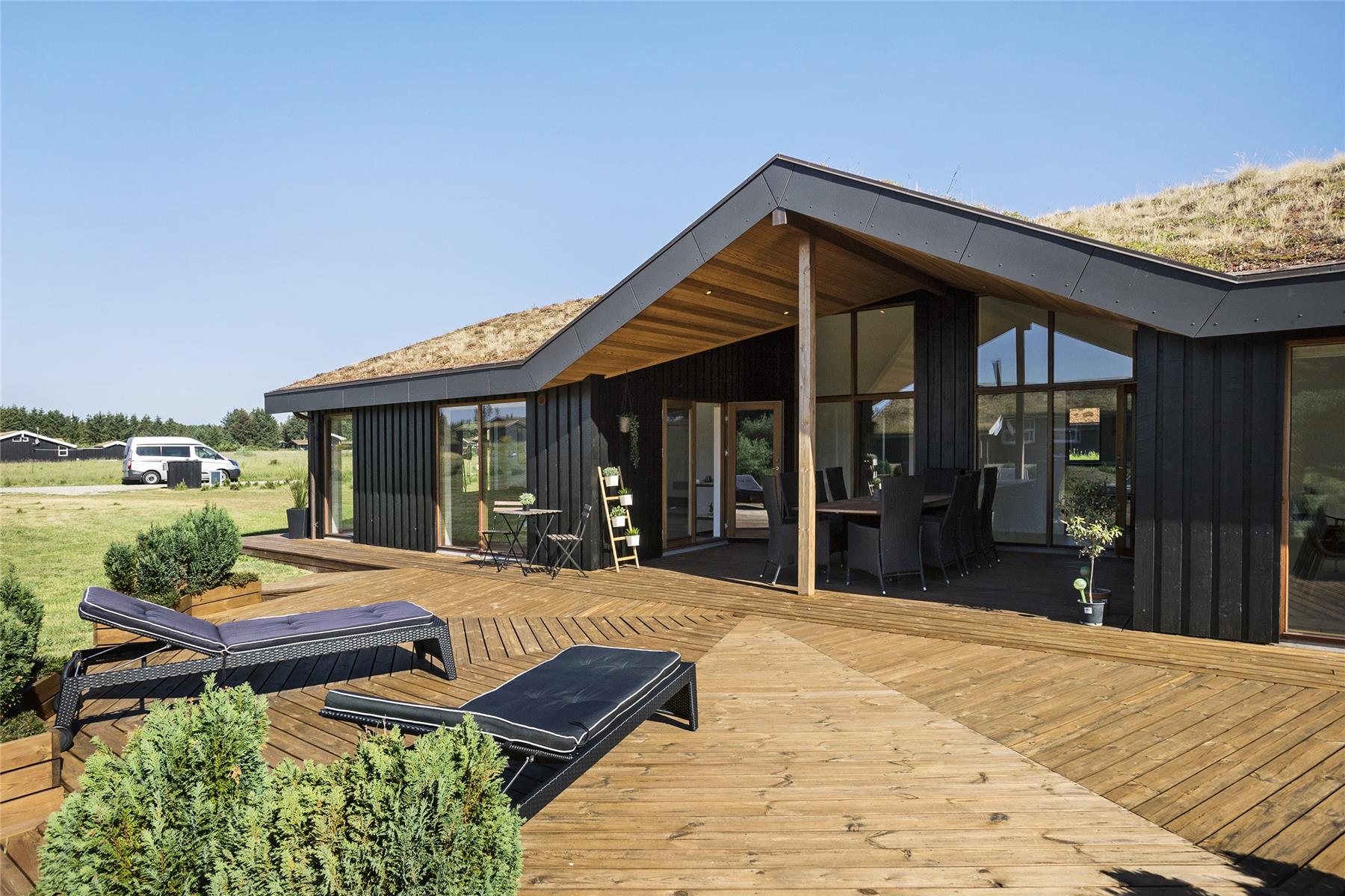Haus-ID: BL1491På dejlig sommerhusgrund ligger dette skønne, utraditionelt indrettede feriehus. Holdt i de bedste materialer. Et perfekt valg for familien der ønsker fred og ro uden at gå på kompromis med kvaliteten.