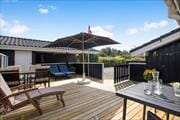 Vom Wohnraum genießen Sie direkten Zugang zu einer herrlichen, neuen Holzterrasse, die ganze drei Seiten des Hauses umgibt. Sie können sich demnach ganz nach persönlicher Vorliebe und nach jeweiligem Stand der Sonne für Ihren Lieblingsplatz unter freiem Himmel entschieden. Gartenmöbel und Liegestühle versüßen Ihnen Ihre Stunden im Freien, in denen Sie sich in wunderschönster Umgebung erholen können. Der Bach Kværnbækken schlängelt sich am Rande Ihres 5.290 m² großen Naturgrundstücks entlang, das trägt maßgeblich zur Idylle und zum reichen Tierleben bei.