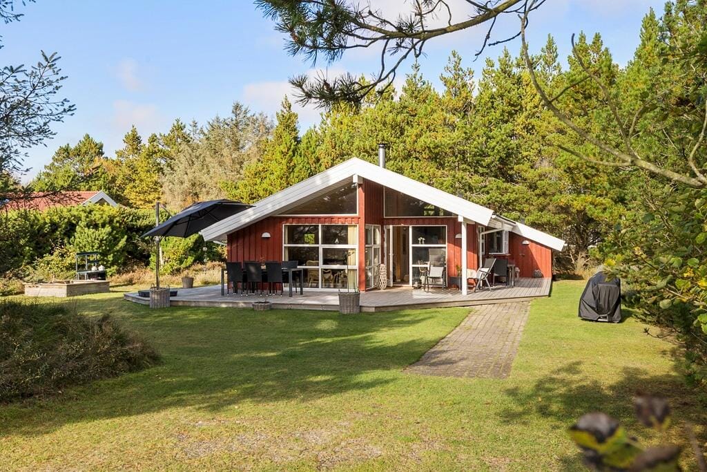 Man kommt automatisch in Urlaubsstimmung, wenn man am Ende des Morten Nielsensvej entlangfährt und das rot gestrichene Holzhaus sieht. Drinnen ist die Atmosphäre gemütlich und einladend - so wie es sich für ein richtiges Ferienhaus gehört - und vor allem das helle Wohnzimmer lädt dazu ein, sofort genutzt zu werden. Bei kühlem Wetter können Sie den Kaminofen anfeuern, bevor Sie es sich auf den Sofas gemütlich machen oder sich zum Kartenspielen am Esstisch versammeln. Wenn Sie hungrig werden, können Sie in der gut ausgestatteten Küche, die zum Wohnzimmer hin offen ist, etwas Leckeres zubereiten. Und wenn Sie sich völlig entspannen möchten, können Sie im großen Badezimmer, das genauso hell und stilvoll ist wie der Rest des Hauses, ein Bad im Whirlpool und in der Sauna nehmen. Außerdem gibt es drei Schlafzimmer, in denen insgesamt sechs Personen übernachten können.