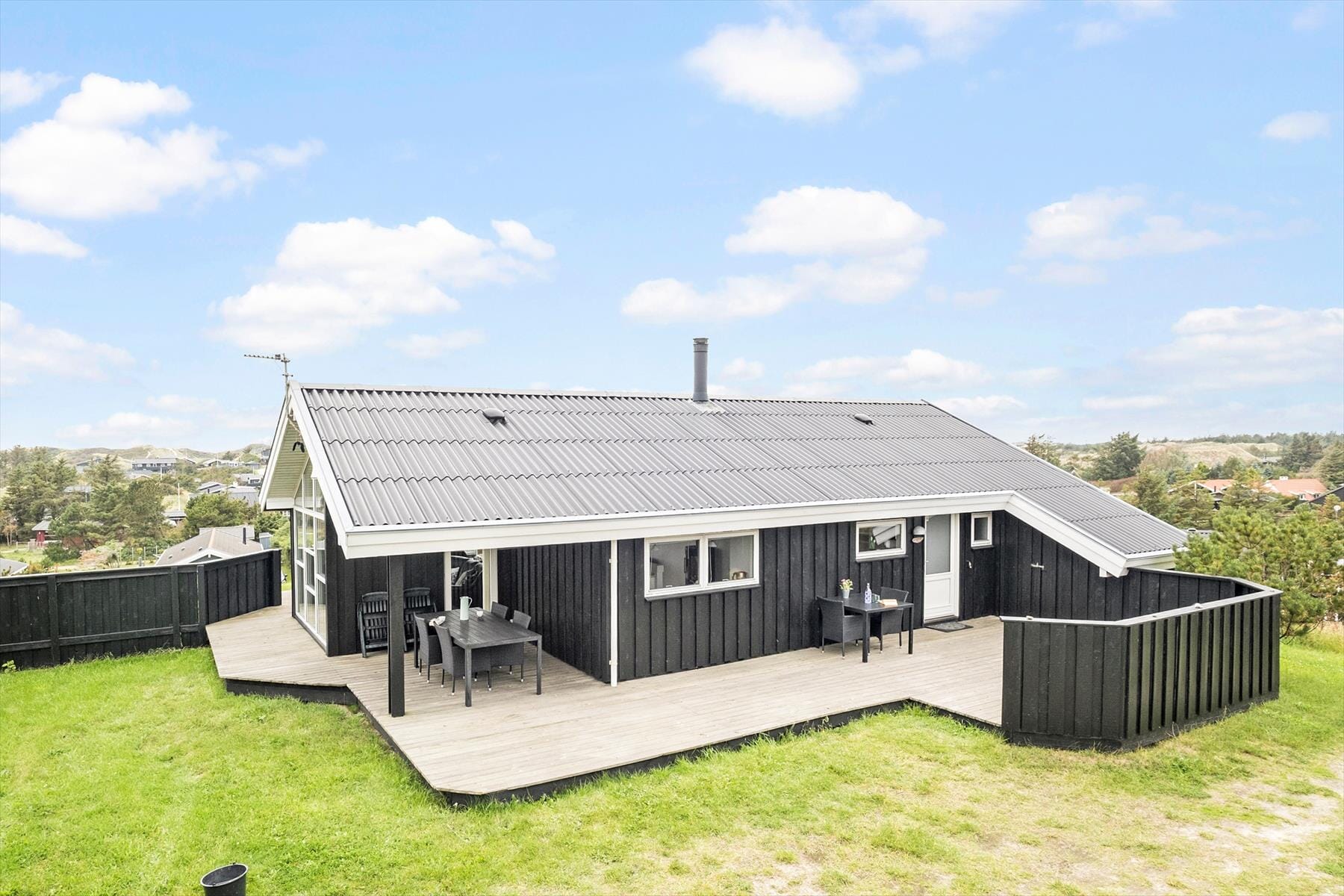 Haus-ID: BL999Ferienhaus in einer fantastischen Lage zentral in Blokhus. Erhöht gelegenes Ferienhaus in einem sehr gepflegten Zustand mit einem herausragenden Ausblick über die Landschaft und das ganze Ferienhausgebiet bei Blokhus.