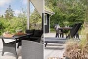 Das große Terrassenareal versüßt dir deine Urlaubstage! Stell dir nur vor, wie du es dir mit einem frischen Kaffee oder einem Glas Wein in der Sonne oder unter der Schatten spendenden Überdachung gemütlich machst. Die Bäume des Naturgrundstücks schirmen das gen Süden und Westen ausgerichtete Terrassenareal gut ab. Vor der Eingangstür, auf der gegenüberliegenden Hausseite, steht zusätzlich ein kleiner Aufenthaltsbereich zur Verfügung. Gartenmöbel, Liegestühle, ein Sonnenschirm und ein Grill sind selbstverständlich vorhanden und laden zu entspannten Stunden und geselligen Runden unter freiem Himmel ein.