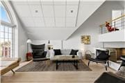 Wenn du dieses einladende Ferienhaus betrittst, wirst du von hellen, offenen Räumen empfangen, die sich über mehrere Etagen erstrecken. Große Fensterpartien im Wohnzimmer sorgen für viel Tageslicht und einen atemberaubenden Blick auf das Meer. Das Wohnzimmer ist in mehrere Ebenen unterteilt, was zu einer angenehmen Atmosphäre beiträgt. Es ist der perfekte Ort, um Zeit mit Familie oder Freunden zu verbringen – entweder am großen Esstisch, der Platz für festliche Mahlzeiten bietet, oder in der gemütlichen Sofaecke vor dem Kamin. Die offenen Verbindungen zwischen Wohnbereich und Küche ermöglichen es, sowohl gesellige Momente als auch Kochspaß zu teilen – während im Hintergrund das Rauschen des Meeres zu hören ist.