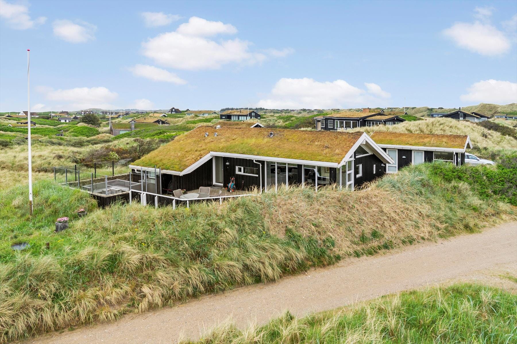 Haus-ID: BL161Dieses schöne Ferienhaus in der Taarnfalkevej 16 verbindet klassischen Komfort mit moderner Ausstattung. Mit einem grünen Dach, das sich harmonisch in die Dünenlandschaft einfügt, und Blick auf die sanfte Natur bietet es die perfekte Kulisse für einen Urlaub, in dem sowohl Entspannung als auch Aktivitäten möglich sind. Hier kannst du die Ruhe genießen, das Rauschen der Nordsee hören und die frische Meeresluft spüren, während die Sonne über den Sanddünen scheint – der ideale Ort für Familien oder Freunde, die die Küste Nordjütlands hautnah erleben möchten.