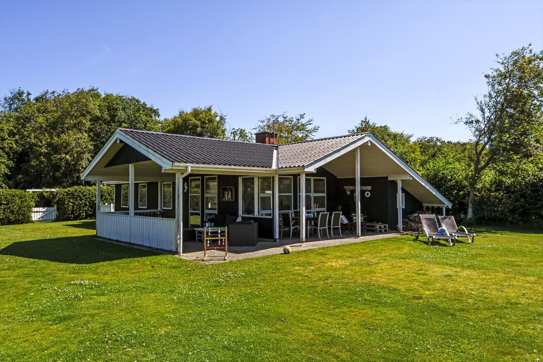Einen Großteil Ihres Urlaubs verbringen Sie bei schönem, warmen Wetter sicherlich im Garten. Dieser erweist sich aufgrund der zurückgezogenen Lage in einer Sackgasse als wahre Oase. Angenehme Erfrischungen verspricht die Außendusche. Auf der Grasfläche werden Ihre Kinder und Ihr Familienhund gern umhertollen und spielen. Gesellige Grillabende und entspannte Sonnenbäder genießen Sie auf dem großen Terrassenareal. Am späten Abend, wenn die Dunkelheit hereinbricht, ziehen Sie sich einfach auf den überdachten Terrassenbereich zurück.