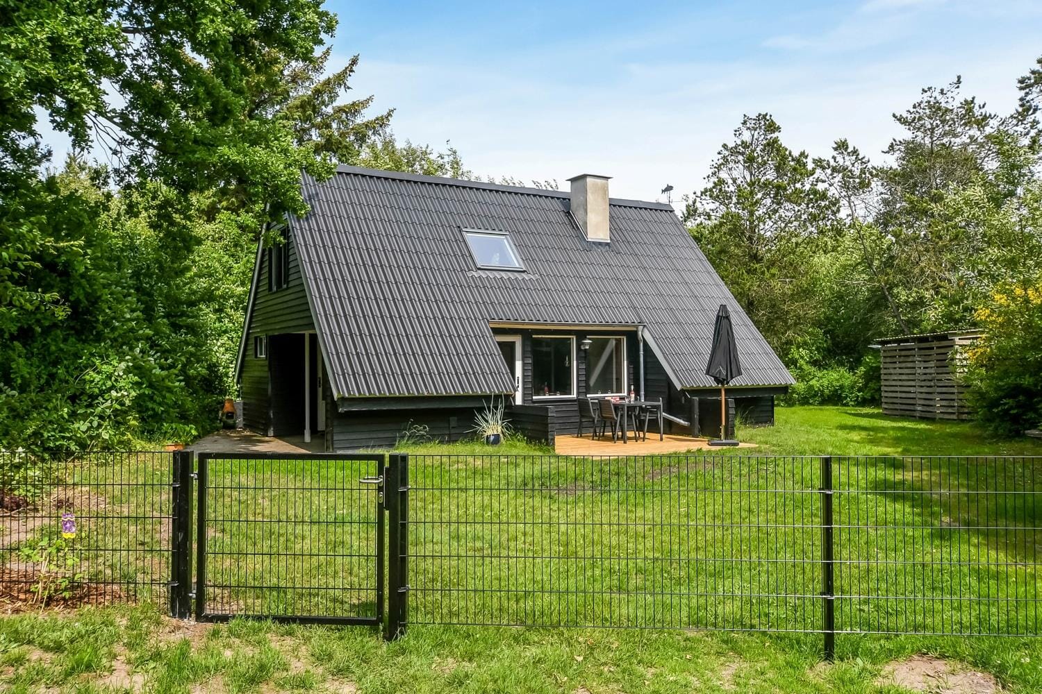 Draußen erwartet dich ein schöner, eingezäunter Garten, der zu Spiel, Entspannung und gemeinsamen Ferienmomenten im Freien einlädt. Das grüne Gras breitet sich unter den Füßen aus, und der Duft von Sommergerichten mischt sich mit Vogelgesang und dem sanften Rauschen des Fjords. Hier finden Kinder und Hunde sichere und freie Bewegungsmöglichkeiten, während du selbst die Sonne genießt oder mit einer Tasse Kaffee den Schatten aufsuchst. Die Terrasse wird schnell zum Lieblingsplatz des Urlaubs – der Tag beginnt hier mit frisch gebrühtem Kaffee und endet mit leckerem Essen unter dem Abendhimmel. In der friedlichen Atmosphäre, die den Garten und das gesamte Gebiet prägt, ist es leicht, zur Ruhe zu kommen und einfach im Moment zu sein – und ist das nicht genau der Sinn von Urlaub?
