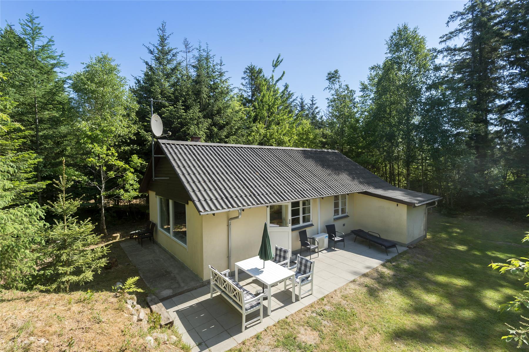 Umgeben von Laub- und Nadelbäumen bekommen Sie den Einduck, inmitten eines Waldes zu wohnen. Wenn Sie es sich im Haus gemütlich machen, genießen Sie die grüne Aussicht und laden durch die offenen Fenster den Gesang der Vögel und den Duft des Waldes in ihr Haus ein. Ist das Wetter kühl genießen Sie die Strahlungswärme des Ofens in der stimmungsvollen Stube, ausgestattet mit zwei guten Sofas, Esstisch und funktionaler Küche. So richtig abschalten können Sie in der kleinen Sauna, oder bei einen Mittagsschlaf in einem der beiden Schlafzimmer, die eingerichtet sind mit einem Doppelbett, bzw. mit zwei Etagenbetten.