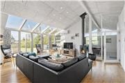 Das 150 m² große Urlaubsdomizil bietet Ihnen aufgrund der ganz hervorragenden Raumaufteilung angenehm viel Platz und Bewegungsfreiheit. Bis zu acht Personen verbringen hier schöne, komfortable Urlaubstage. Die vier Schlafzimmer sind allesamt mit je einem guten Doppelbett eingerichtet. Vom Wohnraum aus gelangen Sie außerdem hinauf auf einen Schlafboden, der als zusätzliche Schlafgelegenheit dienen kann und sich als gemütliche Spielzone auch bei Ihren Kindern großer Beliebtheit erfreuen wird. Das größere der beiden Badezimmer verwöhnt mit einem tollen Whirlpool. Im angrenzenden Aktivitätsraum gibt es eine Sauna. Generell werden Sie sich im Aktivitätsraum viel und gern aufhalten. Ein Billardtisch, eine Tischtennisplatte, eine Dartscheibe und ein Flachbild-TV mit einer Wii-Spielekonsole sorgen hier für viel Spaß und Unterhaltung bei Groß und Klein. Richtig gemütlich und entspannt geht es hingegen im Wohnraum zu. Bei diesem handelt es sich um einen großen Aufenthaltsraum mit einem tollen Tageslichteinfall. Die Küche ist offen mit dem Wohnraum verbunden. An kühlen Abenden können Sie die Wärmepumpe nutzen, die Ihr Haus dank der umweltfreundlichen Solarzellen kostengünstig erwärmt. Für ein Maximum an Gemütlichkeit und echter dänischer Ferienhausstimmung sorgt der natürlich ebenfalls vorhandene behaglich knisternde Kaminofen.