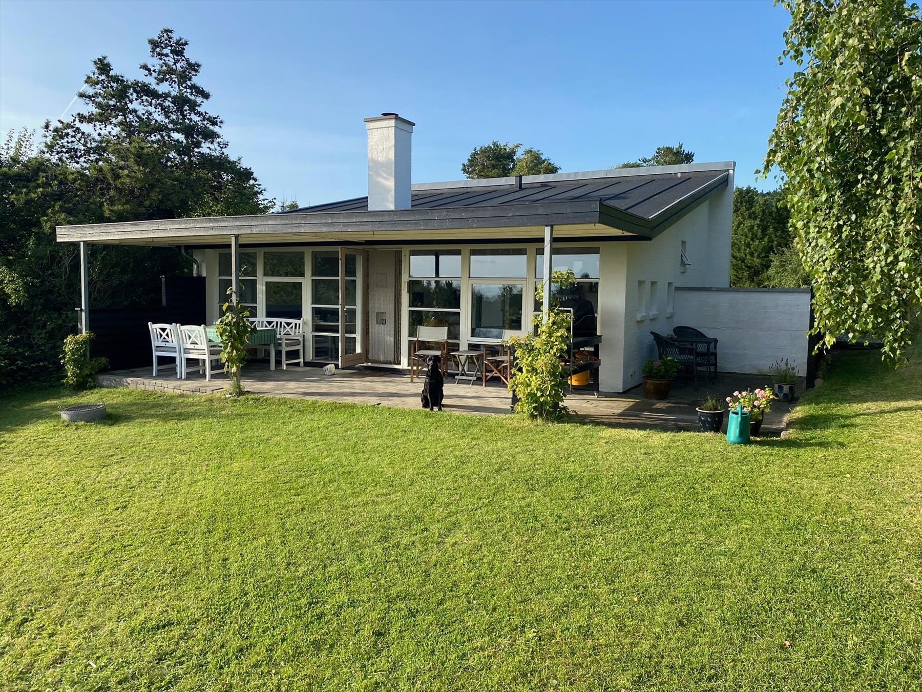 Das Ferienhaus ruht auf einem großen, ungestörten Grundstück mit einer fantastischen Aussicht. Vom Wohnraum aus gelangen Sie auf die große, teilweise überdachte Terrasse mit "Meerblick". Diese besticht mit wunderbar abgeschirmten Sonneneckchen und guten Gartenmöbeln. Auf dieser Terrasse können Sie sich in aller Ruhe niederlassen, ein gutes Buch lesen oder auch in geselliger Runde beisammensitzen. Im Außenbereich treffen Sie außerdem auch auf eine kleine Außenküche, in der Sie frisch gefangenen Fisch reinigen und anschließend auf dem Gasgrill zubereiten können. Der Garten ist angenehm groß und umzäunt, sodass selbst Ihr Hund hier nach Herzenslust umhertollen kann. Ein Teil des Gartens ist so eben, dass Sie hier auch gut Fußball und andere Outdoorspiele spielen können. Zum Ferienhaus gehört eine Schwedische Badetonne, die Ihnen zur freien Verfügung steht.