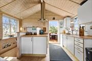 Dein Ferienhaus hebt sich von anderen "gewöhnlichen" Mietobjekten ab. Es wirkt wie ein heimeliger, persönlicher Wohlfühlort, der mit Wärme, Stimmung und Geschichte zu verzaubern weiß. Die Sprossenfenster lassen viel Sonnenlicht durch das Haus strömen und selbst an einem windstillen Vormittag hörst du im Wohnraum das Meeresrauschen und riechst den Duft der Ostsee. Unten im Haus sind zwei urgemütliche Schlafräume untergebracht - einer mit einem Doppelbett und einer mit einem Etagenbett für Kinder. Das Badezimmer ist einfach aber funktionell. Der Eingangsbereich bietet angenehm viel Platz für eure Sonnencreme, die Badelatschen und die Gummistiefel. Im Obergeschoss laden die gemütliche Küche und der offen angrenzende Wohnraum zu traumhaft schönen, stimmungsvollen Urlaubsstunden ein. Freue dich auf den Duft frischen Kaffees, der sich mit der salzigen Seeluft mischt, die durch die Terrassentür strömt. Die Terrassentür wird garantiert einen Großteil des Tages über weit aufstehen. Die tolle Aussicht und die Natur ringsum werden dadurch zu einem natürlichen Teil des Raumes.