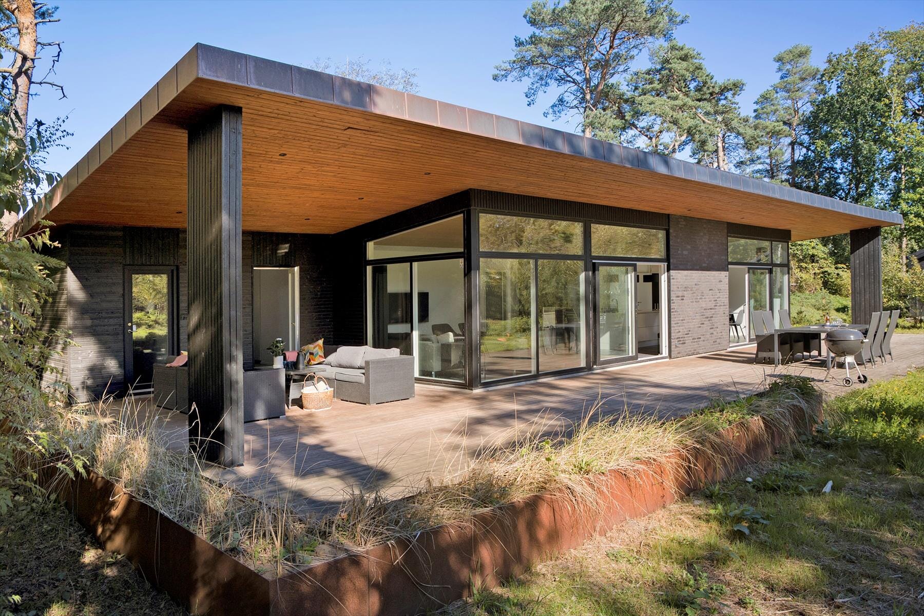 Du wohnst nur etwa 300 m vom Meer entfernt – ideal für spontane Spaziergänge, ein erfrischendes Morgenbad oder einfach ruhige Momente mit dem Klang der Wellen im Hintergrund. Draußen erwartet dich ein großes Naturgrundstück, auf dem Kinder frei spielen können und Erwachsene ihren Lieblingsplatz in der Sonne finden. Die zum Teil überdachten Terrassen machen es dir leicht, zu grillen und lange Abende unter freiem Himmel zu genießen – ganz unabhängig vom Wetter. Wenn du deinen Hund mit in den Urlaub nimmst, wird auch er die vielen Wege und die Freiheit rund ums Haus lieben.