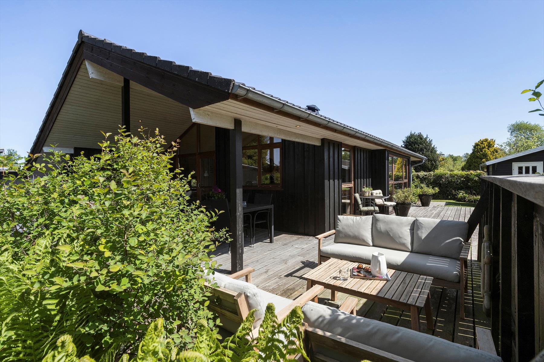 Zusammenfassend laden die Außenbereiche zu Aktivität und Entspannung ein - untermalt von der gleichen schönen Stimmung, die auch das gesamte Haus erfüllt.