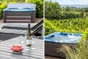 Panoramaaussicht mit Outdoorwhirlpool - modernes Ferienhaus am Skovgårde Strand für 10 Personen