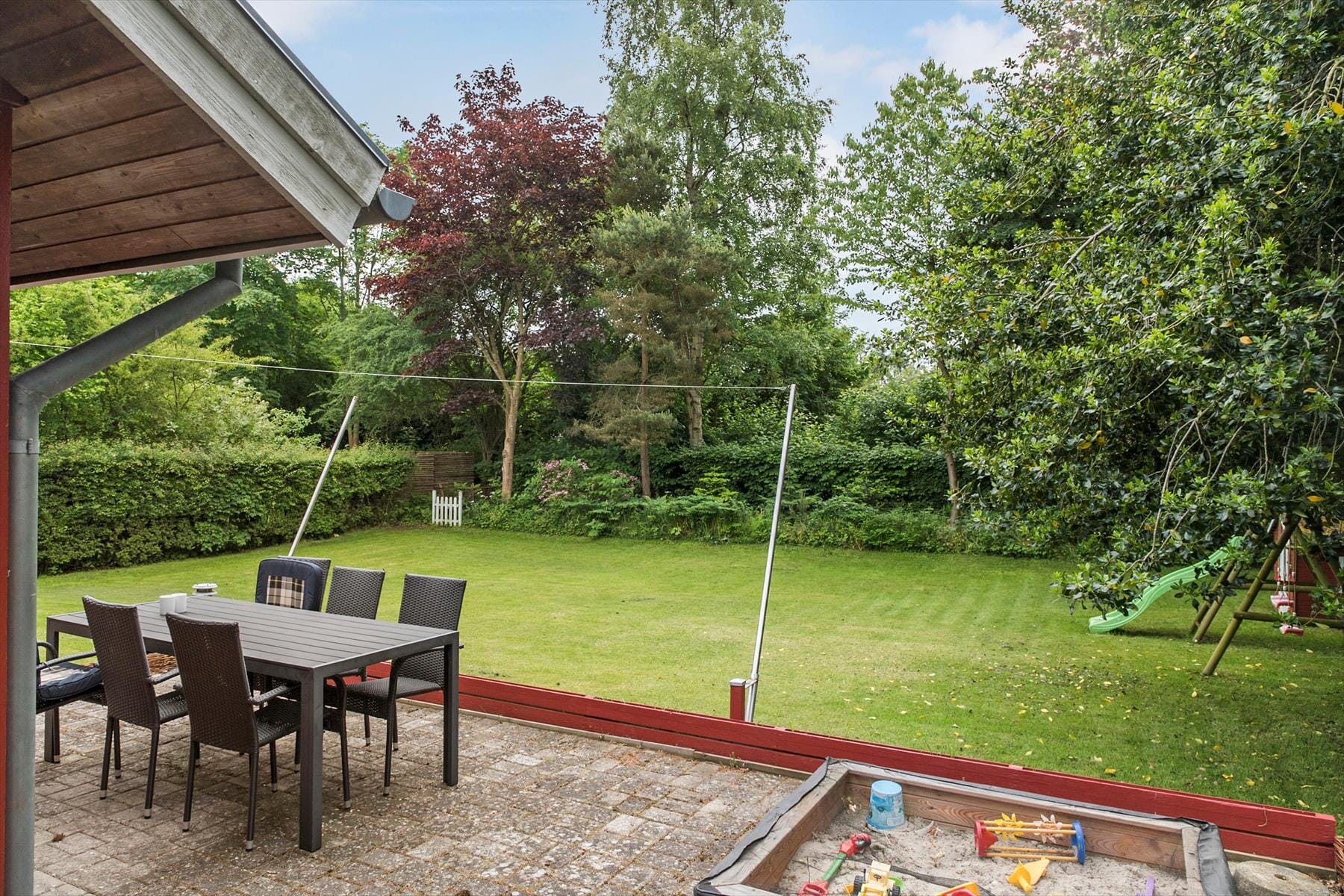Das Ferienhaus liegt auf einem 1100 m2 großen Grundstück, wo im Garten viel Platz für viele Aktivitäten ist. Das Ferienhaus verfügt über eine schöne Terrasse mit Gartenmöbeln und Grill. Darüber hinaus bietet der Garten einen Sandkasten, ein Spielhaus, eine Schaukel und ein umzäuntes Grundstück. Zum Ferienhaus gehört ein Carport.