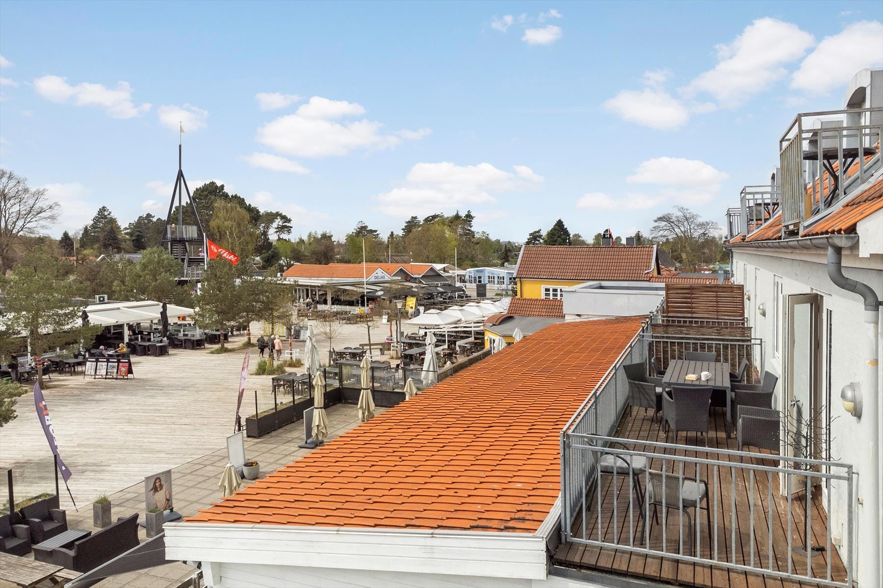 Zur Wohnung gehören zwei schöne Terrassen, eine Terrasse mit Blick auf Marielyst Torv, hier gibt es Gartenmöbel und einen Grill. Auf den Terrassen ist das Rauchen gestattet.